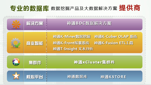 神舟通用公司主營(yíng)業(yè)務(wù)主要包括神通關(guān)系型通用數(shù)據(jù)庫(kù)、神通KStore海量數(shù)據(jù)管理系統(tǒng)、神通xCluster集群件、神通商業(yè)智能套件等系列產(chǎn)品研發(fā)和市場(chǎng)銷售;诋a(chǎn)品組合,可形成支持交易處理、MPP數(shù)據(jù)庫(kù)集群、數(shù)據(jù)分析與處理等解決方案。公司擁有40余名實(shí)戰(zhàn)經(jīng)驗(yàn)豐富的中高級(jí)數(shù)據(jù)庫(kù)技術(shù)服務(wù)人員,可提供數(shù)據(jù)庫(kù)系統(tǒng)調(diào)優(yōu)和運(yùn)維服務(wù)。公司客戶主要覆蓋政府、電信、能源、交通、網(wǎng)安、國(guó)防和軍工等領(lǐng)域,率先實(shí)現(xiàn)國(guó)產(chǎn)數(shù)據(jù)庫(kù)在電信行業(yè)的大規(guī)模商用。