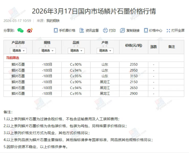 國內(nèi)市場鱗片石墨價(jià)格行情