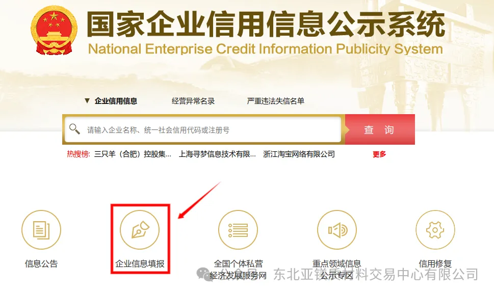 一、進入國家企業(yè)信用信息公示系統(tǒng),網(wǎng)址:https://www.gsxt.gov.cn,進入下方“企業(yè)信息填報”模塊。